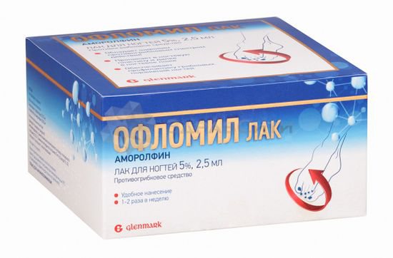 Офломил является противогрибковым препаратом, который выпускается в виде лака. Лечебный эффект обусловлен наличием аморолфина гидрохлорида, присутствующего в количестве 5%. Дополнительными компонентами являются: