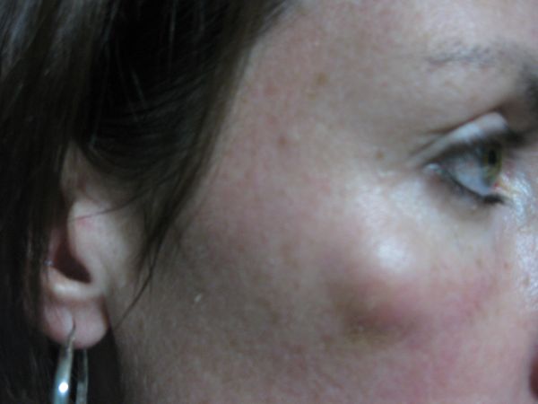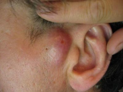 Пульсирующая постоянная боль характерна для пациентов, у которых появился фурункул на виске. Обусловлена такая клиническая картина особенностями анатомического строения – минимальный слой подкожно жировой клетчатки, обильное кровоснабжение. Фурункулы на лице такой локализации сопровождаются постоянной головной болью. Вскрытие их часто приводит к небольшим кровотечениям.