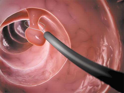 Для удаления слишком больших полипов особенно эффективной считается электрохирургическая методика с применением резектоскопа с петлевым электродом. Петлю электрода помещают у основания образования и срезают образование одновременно с основанием до мышечного слоя.
